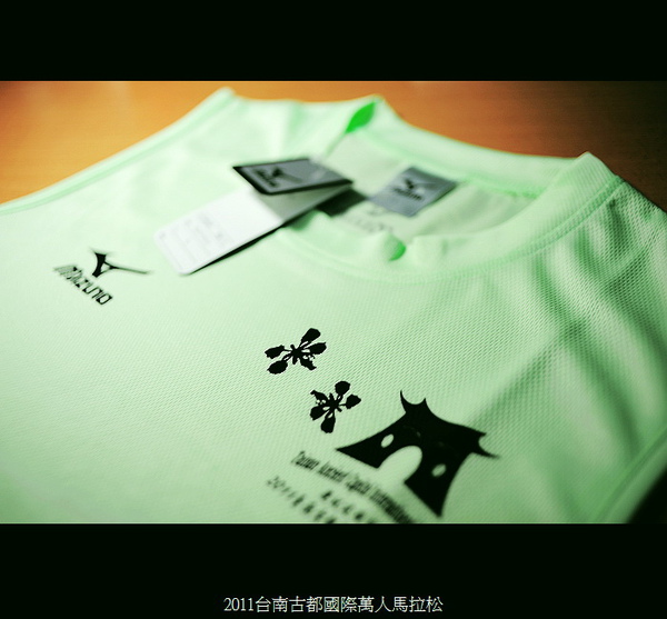 跟朋友拿了10公里組的「套件」,蘋果綠的美津濃排汗背心+沙隆巴斯貼布…